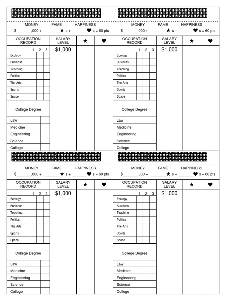This excel spreadsheet contains score sheets for the 1955/65, 1971, and 1979. This listing is for a vintage careers board game from 1971. Careers is a board game first manufactured by parker brothers in 1955 for $2.97 us; Improved score sheet for 1971 version | careers This game is in very.