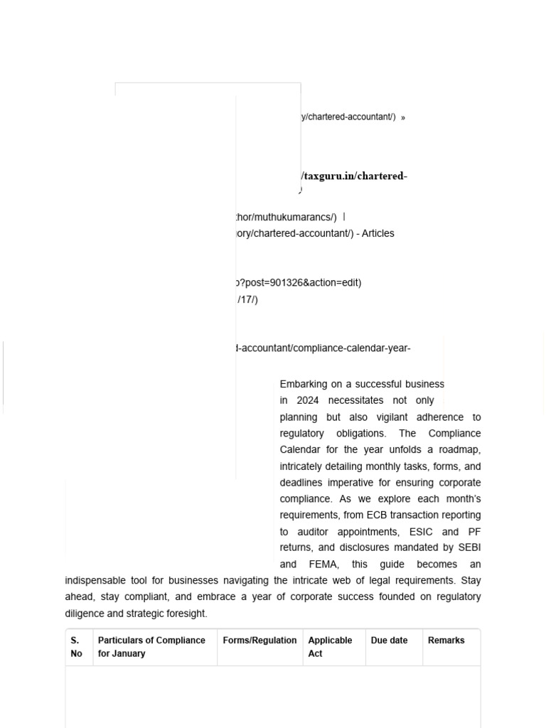 Compliance Calendar For The Year 2024 PDF