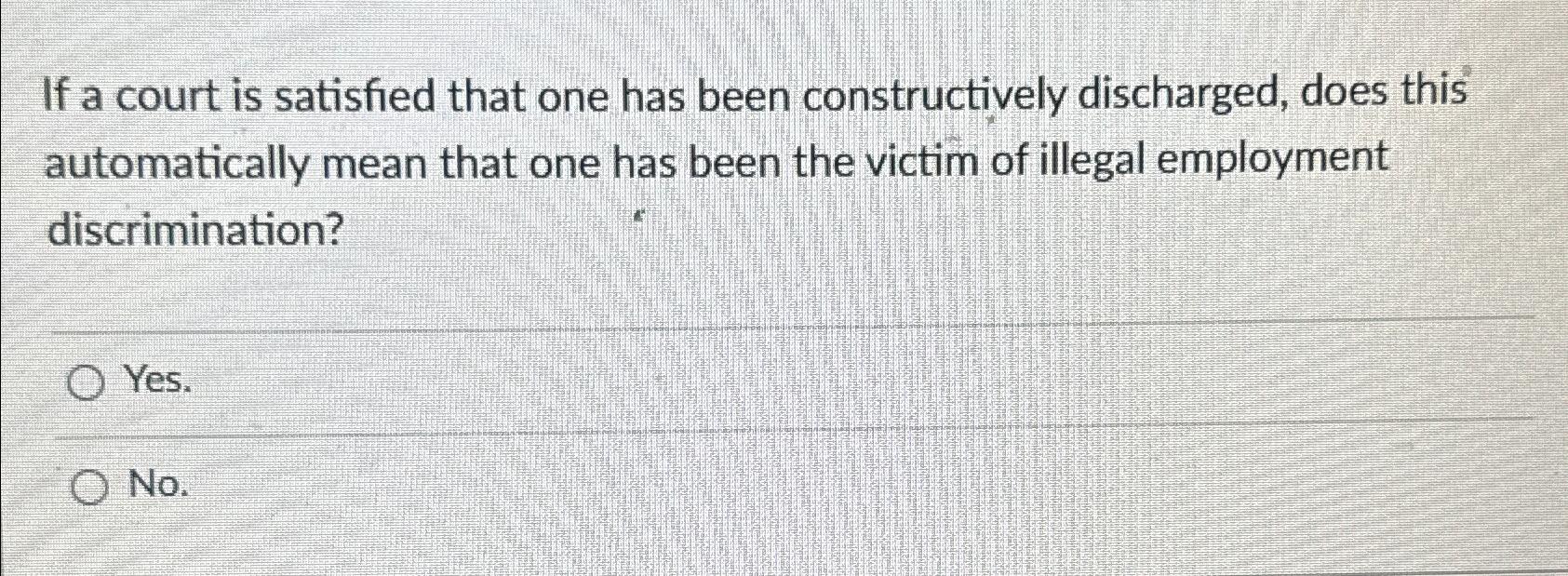 Constructive discharge is an exception that renders the doctrine of employment at will inapplicable. Constructive discharge happens when an employee feels they have no choice but to resign because their work environment has become. Constructive discharge happens when an employee leaves a job because working conditions have grown intolerable. Constructive discharge, also known as constructive termination or constructive. Constructive dismissal, more commonly known as constructive discharge, is a modified claim of wrongful termination. Also referred to as constructive.