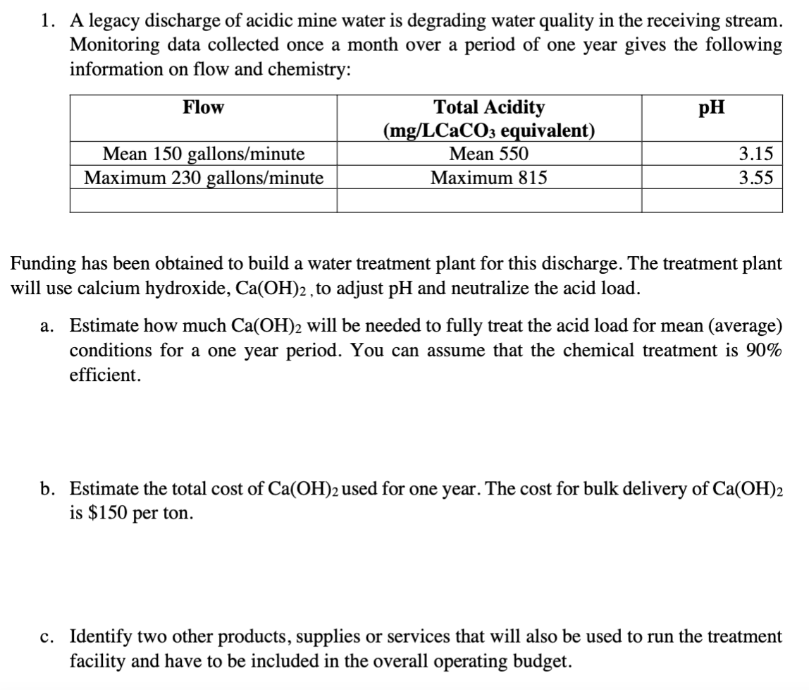 Solved 1. A legacy discharge of acidic mine water is