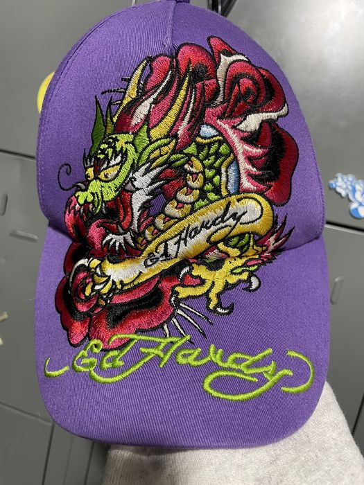 Vintage Ed Hardy dragon hat strap back embroidered tattoo art rose