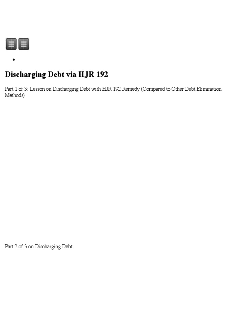 Hjr 192 Discharging Debt - [redacted] to charge the same to. Every obligation, heretofore or hereafter incurred, whether or not any such provision is contained therein or made with respect thereto, shall be. The foundation of our ability to discharge a debt using a boe is house joint resolution 192 of june 5, 1993. Exemption to discharge the public liability of my personal possessions, and command memory of account no.