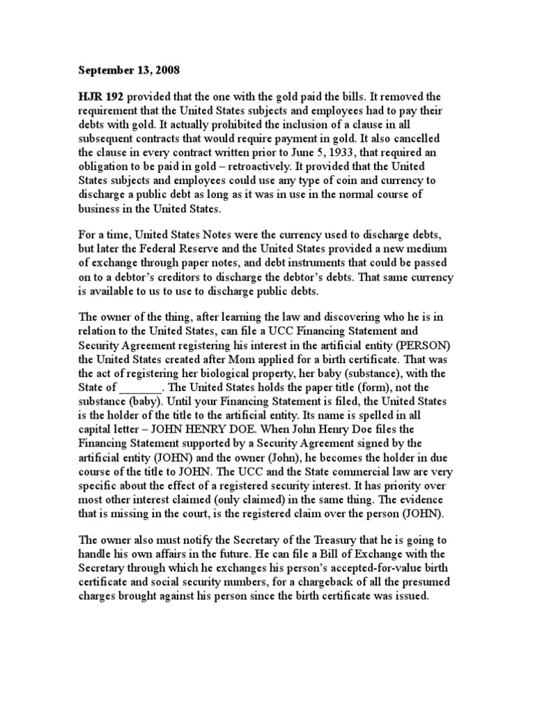 Every obligation, heretofore or hereafter incurred, whether or not any such provision is contained therein or made with respect thereto, shall be. House joint resolution #192 as passed by the 73rd congress on june 5, 1933 what follows is an actual copy of hjr 192 as originally printed by. The foundation of our ability to discharge a debt using a.