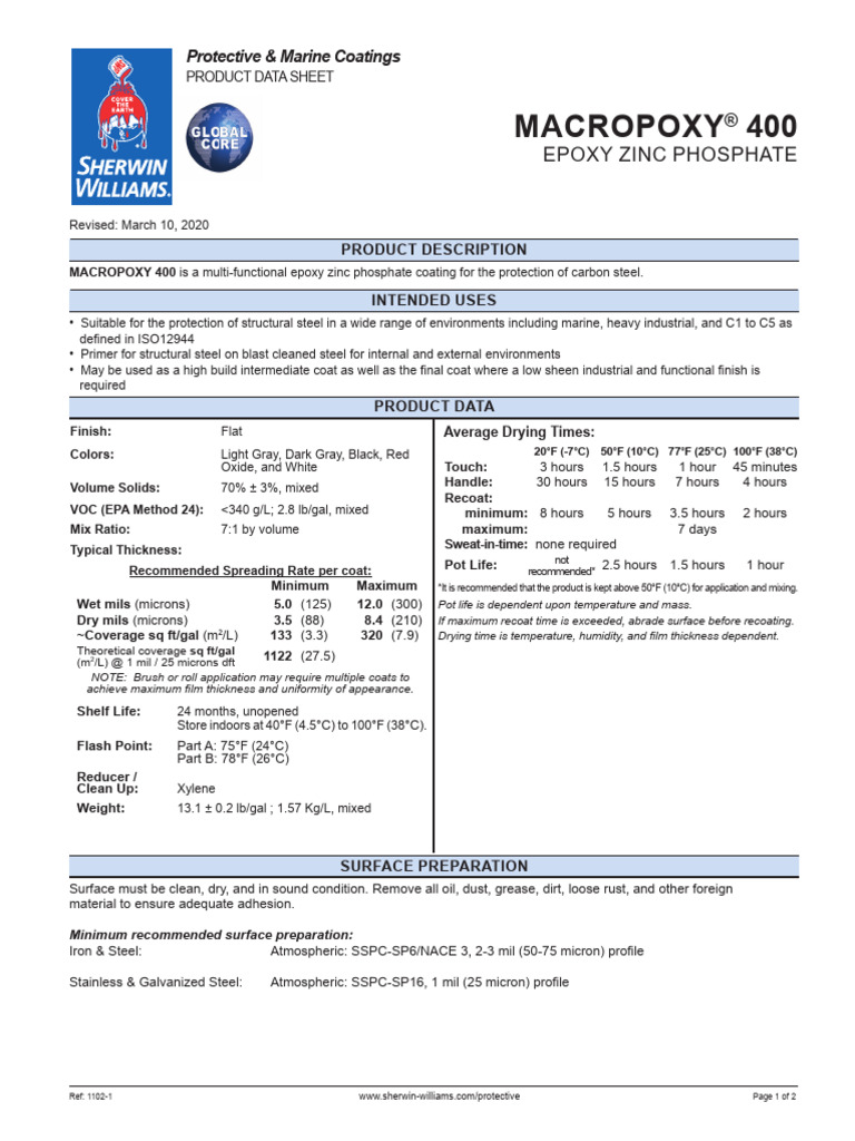 7 million sds in 25 languages. Paint or paint related material. Free download of safety data sheet. Macropoxy 920 preprime is a 100% solids, penetrating epoxy primer for steel or concrete.