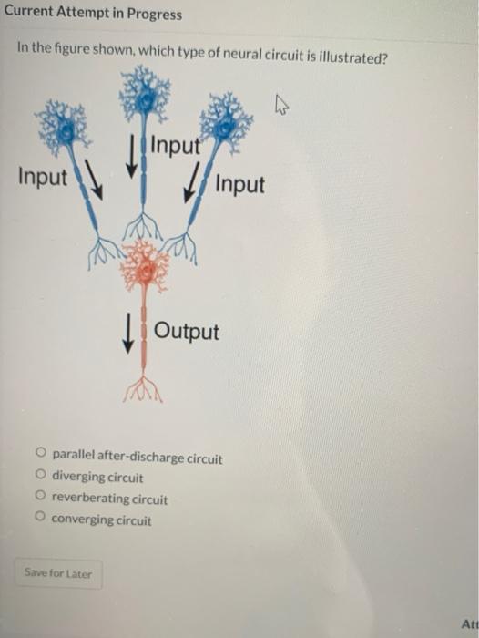 Although some are complex, we can categorize circuits as either converging,. The sequence of neuron interaction is referred to as a circuit. Lastly, is the parallel after. In a reverberating circuit, one or more neurons in the circuit sends a signal back to initiating neuron to produce a repetitive output. A reverberating circuit sends repetitious signals to your diaphragm and.