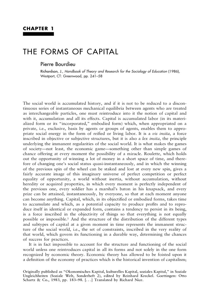 The Forms of Capital by Pierre Bourdieu 1986 PDF Capital (Economics