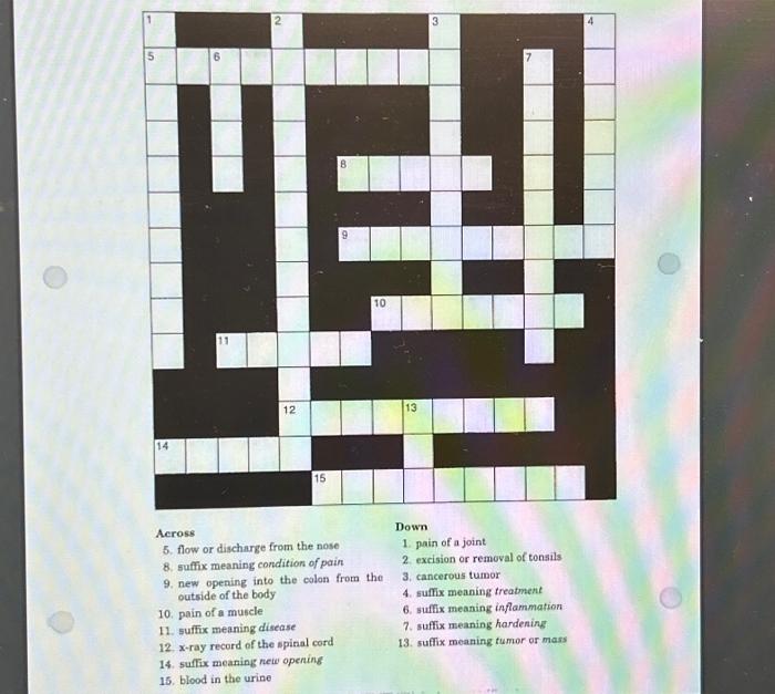 Solved Across 5. flow or discharge from the nose 8. suffix