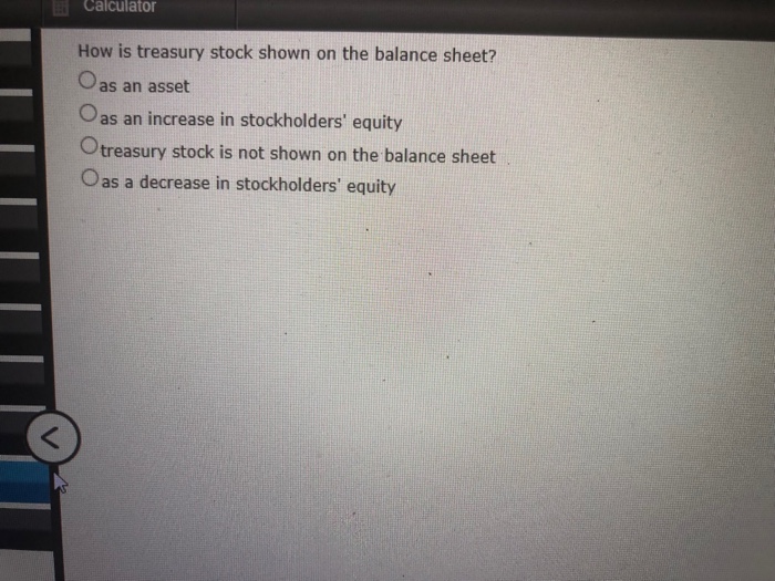 On The Balance Sheet, Treasury Stock Is Listed Under Shareholders’ Equity As A.
