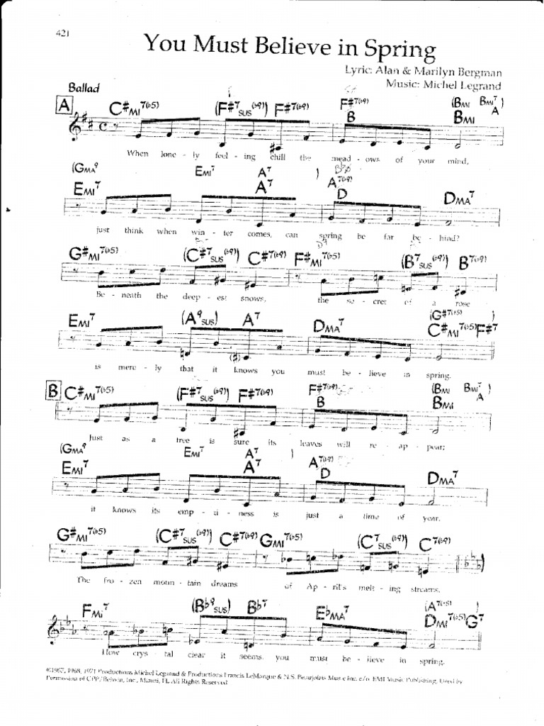 You Must Believe In Spring Lead Sheet - Share, download and print free sheet music of you must believe in spring michel legrand for. You must believe in spring bill evans solo you must believe in spring 1981 transcribed by.
