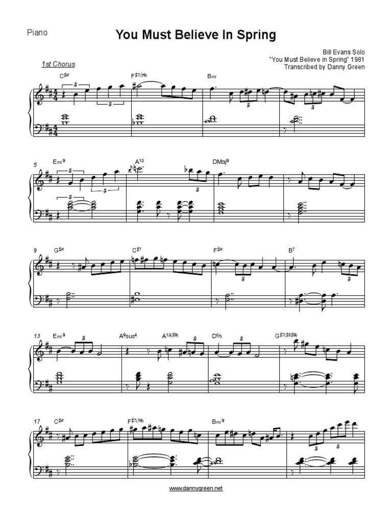 Share, download and print free sheet music of you must believe in spring michel legrand for. You must believe in spring bill evans solo you must believe in spring 1981 transcribed by.